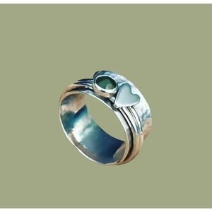 Keywords: Spinner Ring, Meditation Ring, Worry Ring, Anxiety Ring, Heart Ring, Silver Tone Ring, Green Stone Ring, Band Ring, Bohemian Jewelry, Gift for Her, Stress Relief Jewelry, Womens Ring, Fashion Ring, Statement Ring