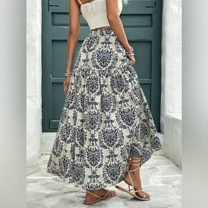 Elevate your style with this elegant floral maxi skirt. Featuring a beautiful blue and white pattern, it's perfect for any occasion.