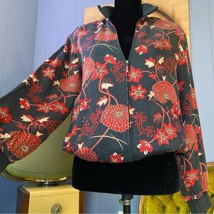 Vintage 90s Notations Silk Floral Zip Up Jacket