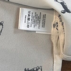 Charming cream blouse with a black collar. Features playful animal print. Ideal for casual outings.