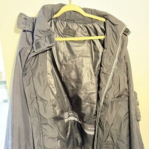 Sleek black raincoat by Bogner. Lightweight and water-resistant. Ideal for rainy days.