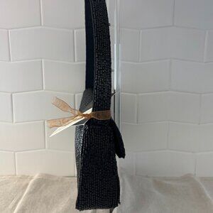 Black and white beaded tassel and zippered closure