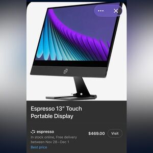 • 13.3″ portable second espressoDisplay originally ~$439 USD (Touch) at retail.