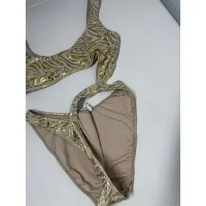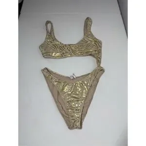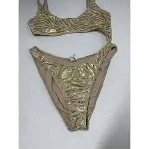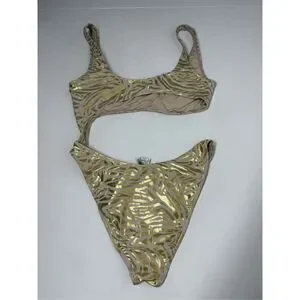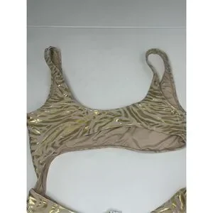 Forever 21 Gold Zebra One Piece Swimsuit Open Middle High Cut Bottom Size XL