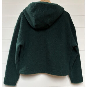 Outdoor Voices Mega Fleece Cropped Pullover Wool Blend Hood Snap Button Green M