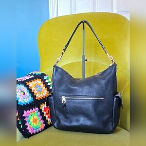 This bag is a workhorse! Substantially sized for work or an all day outing, but still elegant and beautiful. The pebbled leather is super soft but the bag hasn't lost its structure. Truly a great bag!