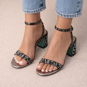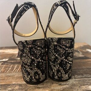 statement heels, betsey johnson heels, rhinestone heels, snake print heels, block heel sandals, ankle strap heels, glam heels, party shoes, night out heels, dressy sandals, embellished heels, edgy chic style, cocktail outfit shoes, holiday party heels, wedding guest shoes, festival heels, sparkle shoes, fashion statement heels