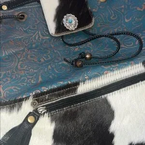 Beautiful turquoise, leather and animal fur bag!