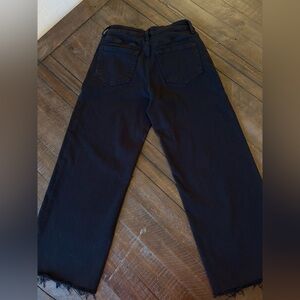 Stylish Vervet high-rise black cropped jeans in size 27. Features raw hem bottoms, a flattering straight-leg cut, and soft stretch denim for all-day comfort. These are the perfect everyday black jeans — dress them up or down easily.