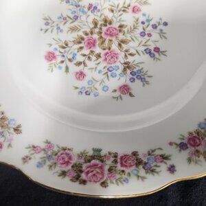 Exquisite gold trim and floral pink flowers.