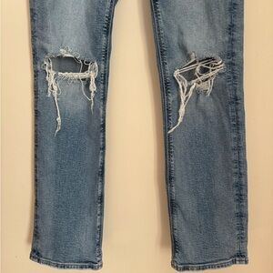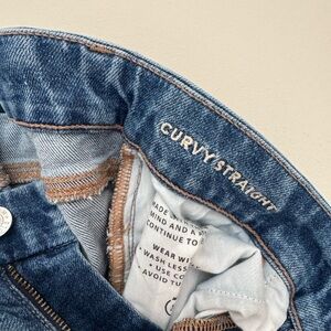 American Eagle Outfitters women’s curvy straight jeans in size 0 regular. Jeans are a medium wash and distressed. In excellent condition- no stains, or flaws. Fast shipping!