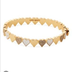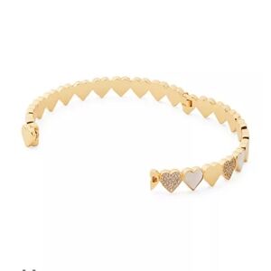 NWT kate spade new york Take Heart Hinge Bangle Bracelet. Plated metal, cubic zirconia, mother-of-pearlTurn-and-click closureInner diameter: 2.38" x 2.25"Weight: 22g