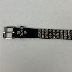 Hot Topic Skulls & Crossbones Three Row Pyramid Stud Belt Sz S