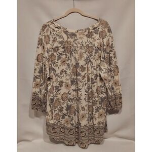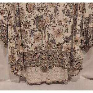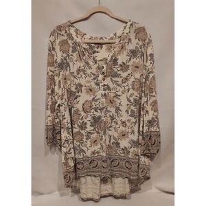 Lucky Brand Womens Paisley Multicolor 3/4 Sleeve Border Print Blouse Size 2XL