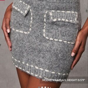 Cozy gray cardigan with white accents AND matching skirt SET! This listing is for BOTH sweater and skirt - brand NEW from Vici.