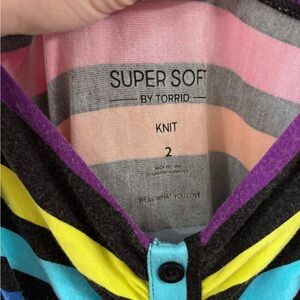 Vibrant neon colors, super soft by Torrid, size 2 (18/20), gently used with slight fade to some of the black material, otherwise great condition!