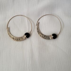 Elegant Silpada Sterling Silver Black Chalcedony Comet Tail Hoop Earrings W1874