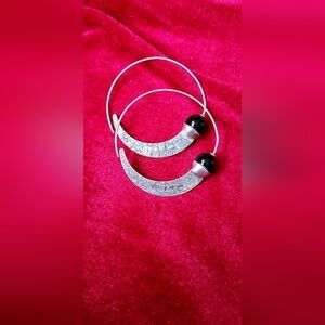These elegant hoop earrings feature a sleek silver design with striking black accents, perfect for any occasion.