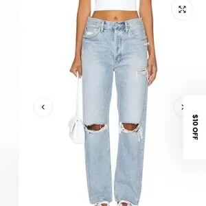 EUC - no flaws. Pre-distressed medium blue jeans with a relaxed fit from the always amazing AGOLDE. No stretch, button waist. Extremely cool fit. Size 28 and I would say TTS. No signs of wear.