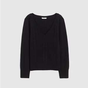Knit from soft merino wool with a touch of stretch, this relaxed cable-stitch sweater features a V-neckline and gently gathered shoulders for a feminine touch. Its easy silhouette makes it effortless to pair with any jean.