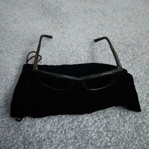Elevate your style with these classic black Boucheron sunglasses. Edgy rims on sides. Perfect for any occasion, they offer both fashion and function. Lightly worn, good condition. Includes black protective case, dust cloth, carrying case, and information sheet.