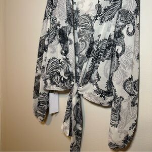 Discover elegance with this stunning paisley blouse. The black and white design adds a timeless touch to your wardrobe.