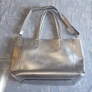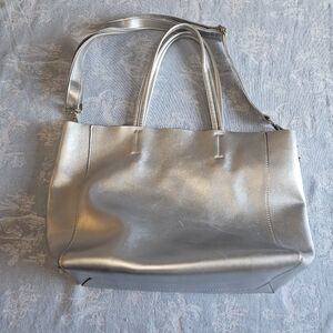 Silver carryall bag with removable inside. Some minor signs of use on the outside, pictured. Like new on the inside. The insert snaps out turning it into a tote bag. Perfect for travel or for long days away from home. See photos for measurements.