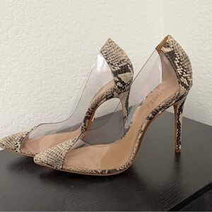 SCHUTZ Women's Snakeskin and Clear Heels - Tan and Black
