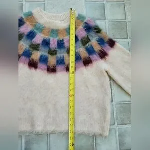 Madewell Brushed Checkerboard Fair Isle Sweater Size Small. 20" pit to pit and 22" long.