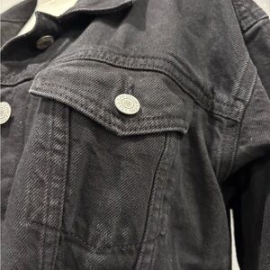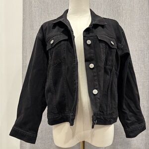 Stylish black denim jacket by GAP. Features classic button-up design.