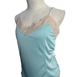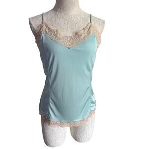 Vintage Lace Trim Camisole Aqua Blue Clubwear Tank M Y2K Balletcore The Limited