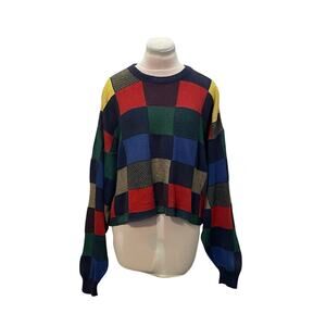 NWT URBAN RENEWAL Cropped Colorblock Sweater M/L Square Print Recycled Vintage