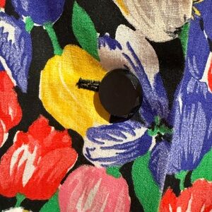 36 inch bust, 34 inch waist, length 41 inches. This is a Vintage size 12, which translates to a small- medium. Elevate your wardrobe with this stunning vintage 80s Neiman Marcus dress, perfect for turning heads at weddings and parties! This vibrant piece features a bold, all-over tulip floral print, iconic puff sleeves with shoulder pads, and a flattering drop waist with a tiered, ruffled hem. The bright, eye-catching colors and unique silhouette make it a true statement piece for any occasion.