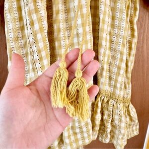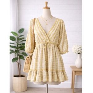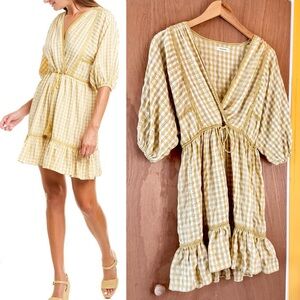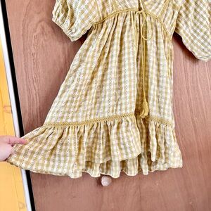 Max studio yellow floral gingham summer dress. Tie waist, Vneck, half balloon sleeves