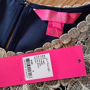 NWT Lilly Pulitzer Nala soft shift dress size 6. Navy blue with gold detail.