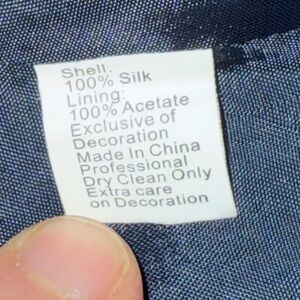 Navy silk halter top with embellished bronze oval rings at neckline. Flattering cut out shoulders. Lined. Side zipper. Like new condition .size 6