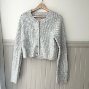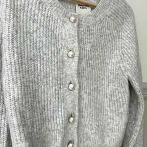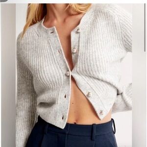 Abercrombie & Fitch Small Light Gray Faux Pearl Buttons Cardigan
