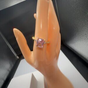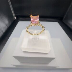 Pink Radiant-Cut Gemstone Ring With Gold-Plated Brass Band & Micro Insert Inlay