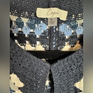 Capri Navy White Gray Granny Square Women's Sweater Size Large