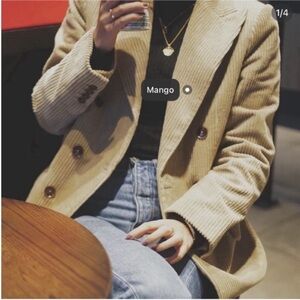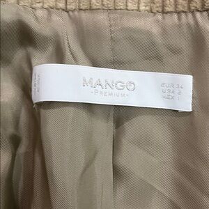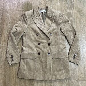 Mango MNG Structured Tan Brown Double Breasted Corduroy Blazer size 2