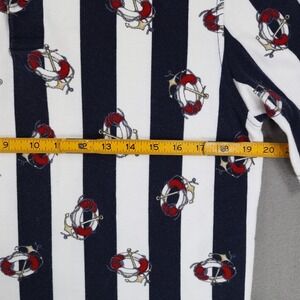 Vintage Lands End Denim Collar Polo Shirt Sz M Nautical Stripe Life Saver Anchor