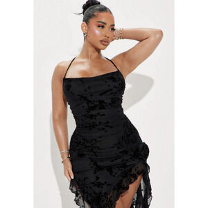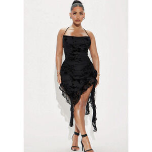 NWT Fashion Nova Blossom Bliss Whimsygoth Burnout Midi Dress - Black, Size L