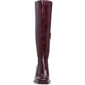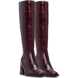Women Burgundy Polyurethane Knee High Side Zipper Square Toe Block Heel Boots