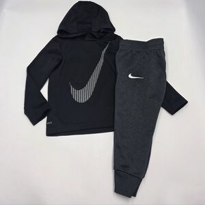 -Black midweight thermal Dri-Fit hoodie and coordinating gray joggers from Nike in size 2T