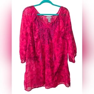 Catherine's 3/4 Sleeves Sheer Relaxed Fit Pull Over Top 926