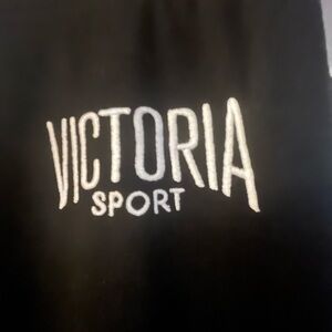 Comfortable black joggers with drawstring waist. Features Victoria Sport logo.
