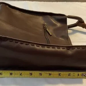 Chic and versatile leather shoulder bag. Adjustable long strap, whipstitch details. 11” x 11” x 4” Magnet close. I would say this is new without tags.