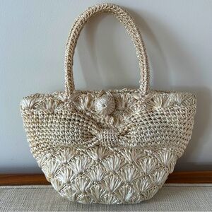 Vintage Summer Purse, Made in Japan. These faux straw bags were quite fashionable in the 50’s and into the 60’s. The interior is very clean. Measurements are photographed. The only tag/label says Made in Japan. Pair with your summer fashion; looks especially nice with Cotton and Linen. EUC.