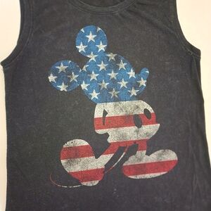 Sleeveless tank top featuring Mickey Mouse with an American flag design. Perfect for casual wear.