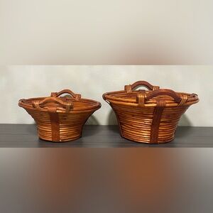 🍂 Hand Crafted Brown Wicker Baskets Set with handles